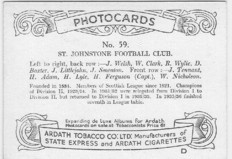 Ian Grant's 1936 Cigarette Teams / pc059b