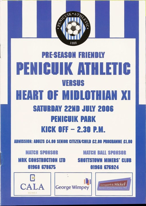 Hearts Programme Covers 2006-07 / 2006072202 Penicuik vs Hearts XI Penicuik Park