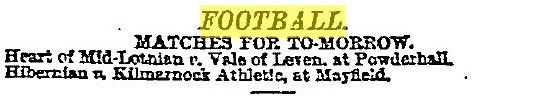 | Sat 13 Sep 1879 Hearts 1 Vale Of Leven 2 Sat 13 Sep 1879 Hibernian 1 Kilmarnock Athletic 6 |
