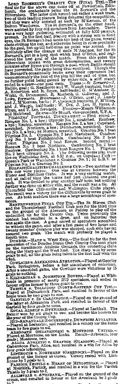 | Sat 26 Apr 1884 Partick Thistle 3 Hearts 2 Sat 26 Apr 1884 Hibernian 1 St Bernards 1 |