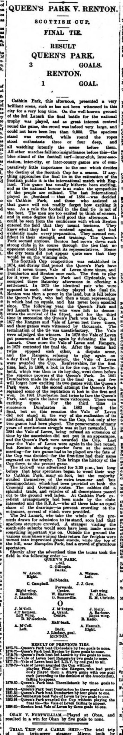 | Sat 13 Feb 1886 Queens Park 3 Renton 1 Sat 13 Feb 1886 Partick Thistle 6 Hearts 0 Sat 13 Feb 1886 Arbroath 1 Hibernian 1 |