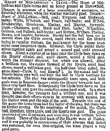 | Sat 16 Oct 1886 Clyde 3 Hearts 1 | |||||||
