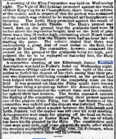 | Sat 05 Feb 1887 Hearts 4 Edinburgh University 1 Sat 05 Feb 1887 Hibs 4 St Bernards 2 |