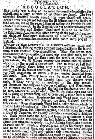 | Sat 12 Nov 1887 St Mirren 2 Hearts 2 | |||||||
