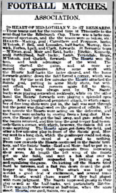 | Sat 21 Jan 1888 Mossend Swifts 3 Hearts 1 | |||||||