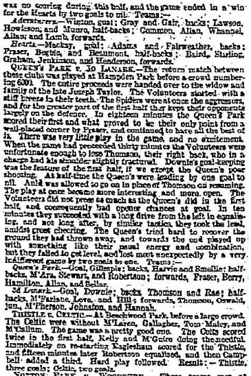| Sat 05 Jan 1889 Hearts 2 Adventurers 0 | |||||||