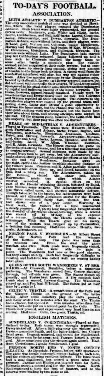 | Sat 05 Jan 1889 Hearts 2 Adventurers 0 | |||||||