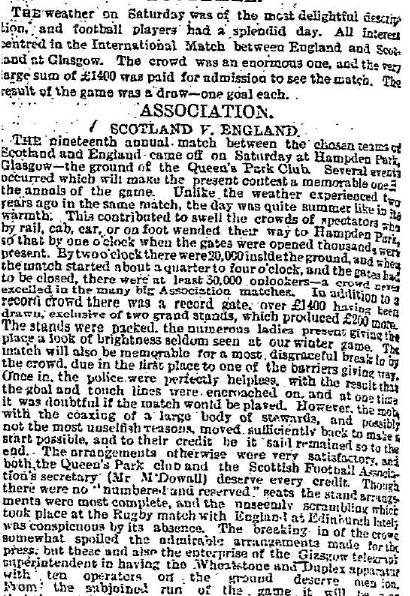 | Sat 05 Apr 1890 Scotland 1 England 1 Sat 05 Apr 1890 Hearts 6 St Bernards 1 Sat 05 Apr 1890 East Stirlingshire 3 Hibernian 5 |