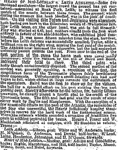 | Sat 09 Aug 1890 Leith Athletic 0 Hearts 5 | |||||||