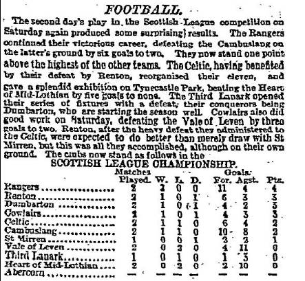 | Sat 23 Aug 1890 Hearts 0 Celtic 5 Sat 23 Aug 1890 Abercorn 4 Hibernian 1 |