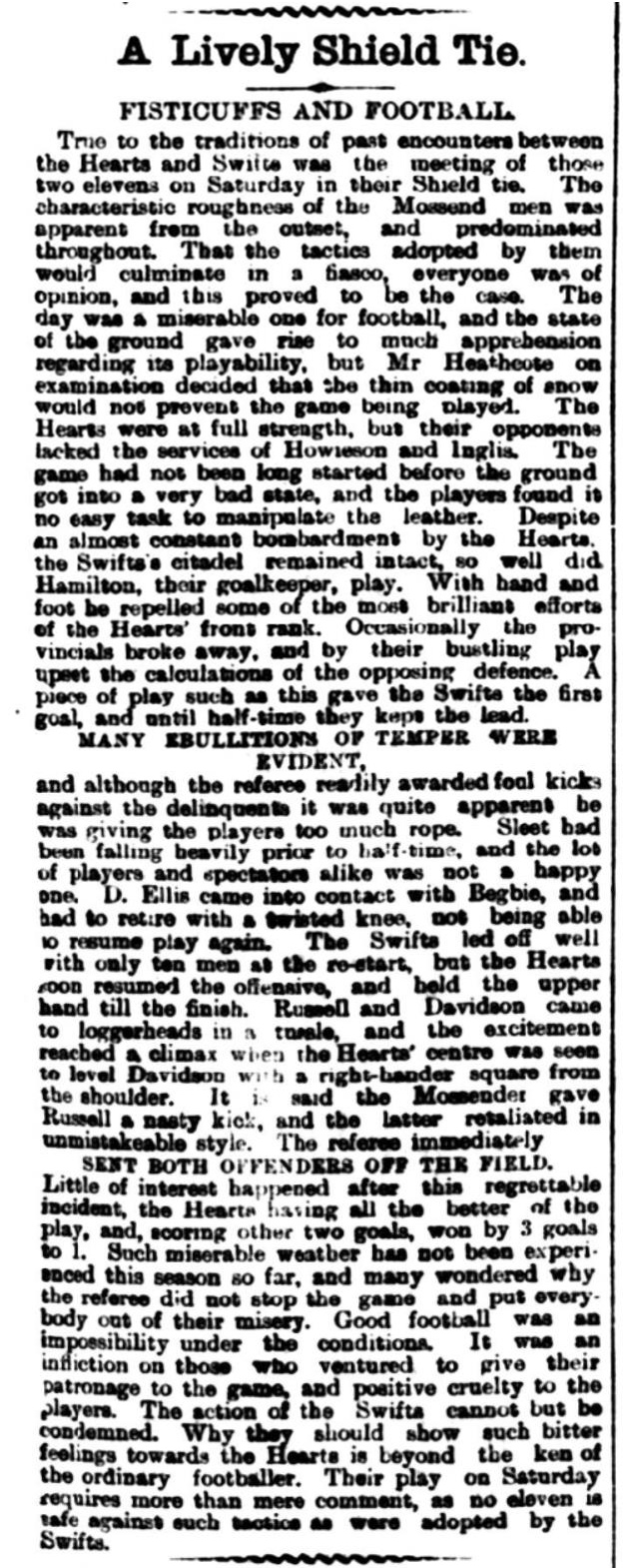 | Sat 12 Dec 1891 Hearts 3 Mossend Swifts 1 | |||||||