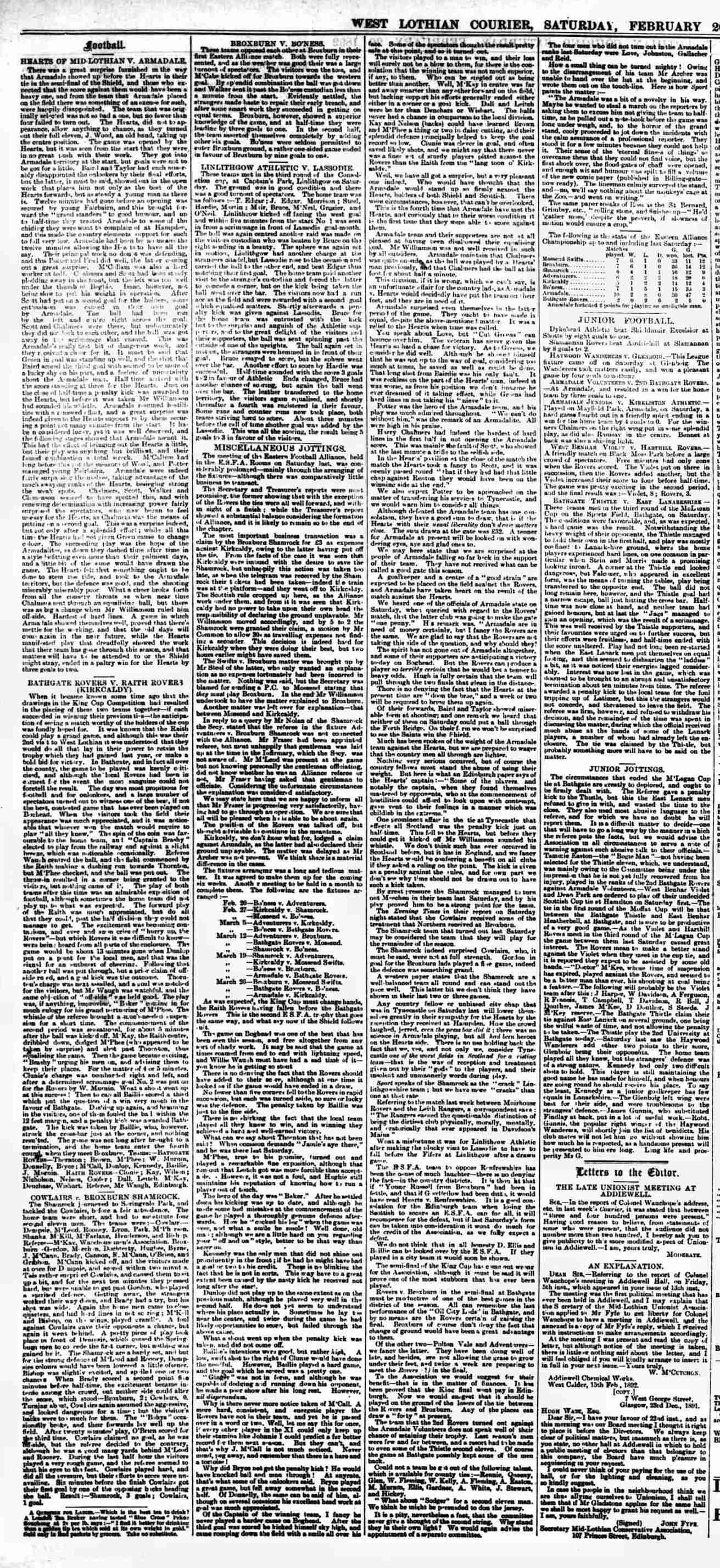 | Sat 13 Feb 1892 Hearts 3 Armadale 2 | |||||||