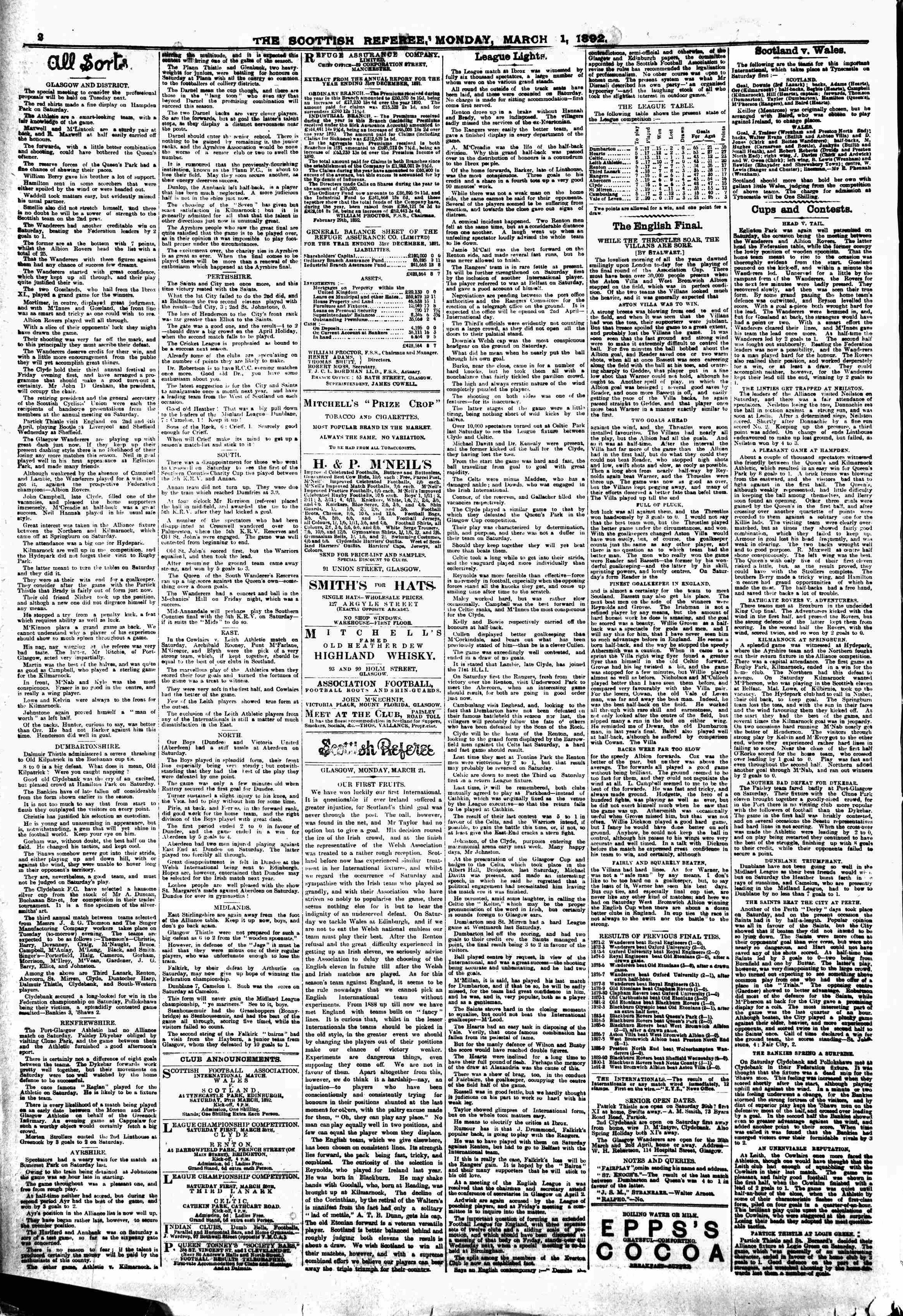 | Sat 19 Mar 1892 Ireland 2 Scotland 3 Sat 19 Mar 1892 Hearts 7 Vale Of Leven 0 |