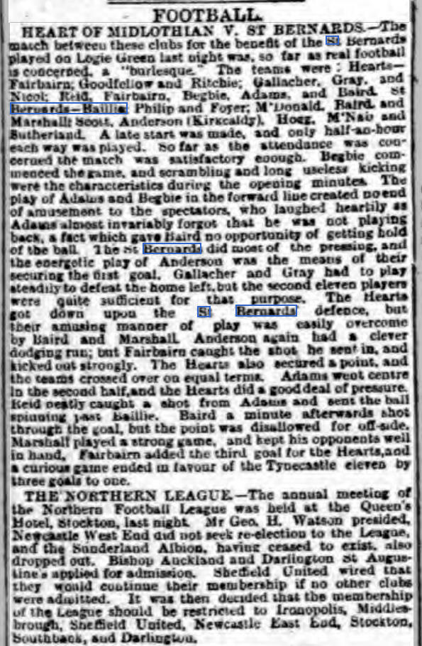 | Mon 16 May 1892 St Bernards 1 Hearts 3 | |||||||