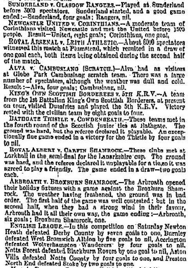 | Sat 31 Dec 1892 Hearts 2 Renton 0 | |||||||