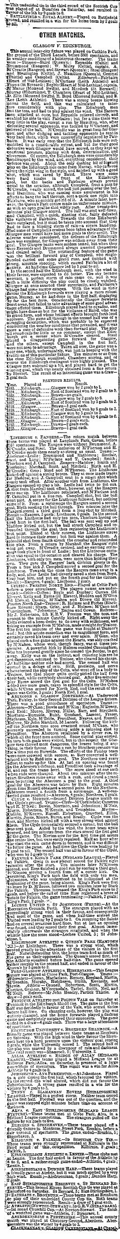 | Sat 21 Oct 1893 Dundee 2 Hearts 5 Sat 21 Oct 1893 Port Glasgow Athletic 3 Hibernian 3 |