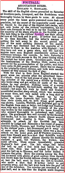 | Sat 06 Apr 1895 England 3 Scotland 0 Sat 06 Apr 1895 St Bernards 0 Hearts 3 Sat 06 Apr 1895 Hibernian 3 Port Glasgow Athletic 3 |