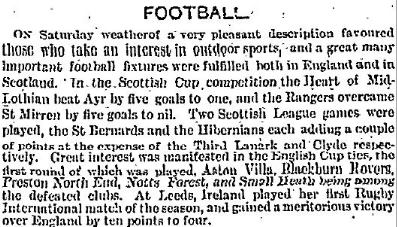 | Sat 01 Feb 1896 Ayr FC 1 Hearts 5 Sat 01 Feb 1896 Clyde 0 Hibernian 3 |