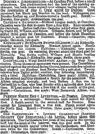 | Sat 08 Feb 1896 Arbroath 0 Hearts 4 Sat 08 Feb 1896 Hibernian 6 Raith Rovers 1 |