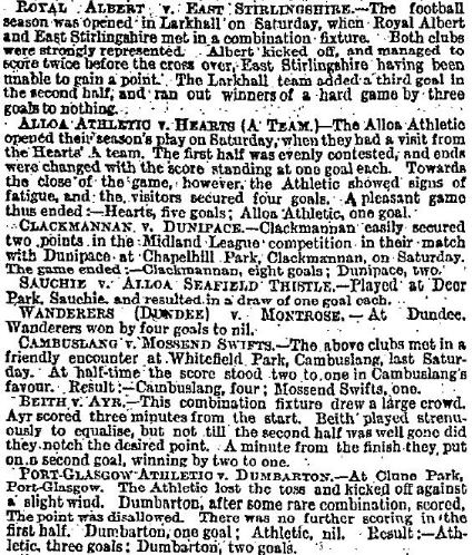 | Sat 22 Aug 1896 Hearts 6 Abercorn 1 Sat 22 Aug 1896 Dundee 3 Hibernian 0 |