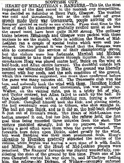 | Sat 14 Jan 1899 Rangers 4 Hearts 1 | |||||||