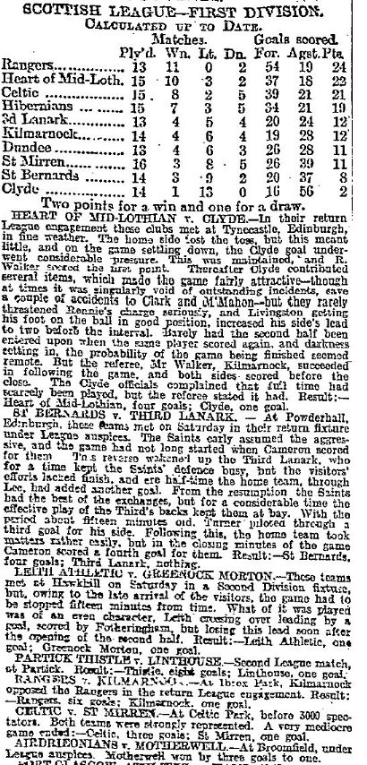 | Sat 09 Dec 1899 Hearts 4 Clyde 1 | |||||||