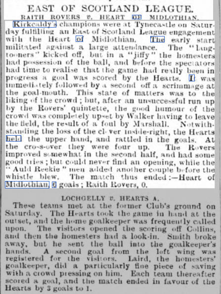 | Sat 24 Nov 1900 Hearts 6 Raith Rovers 0 | |||||||