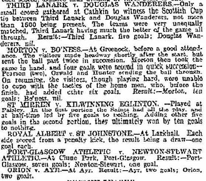 | Sat 12 Jan 1901 Hearts 7 Mossend Swifts 0 Sat 12 Jan 1901 Hibernian 7 Dumbarton 0 |