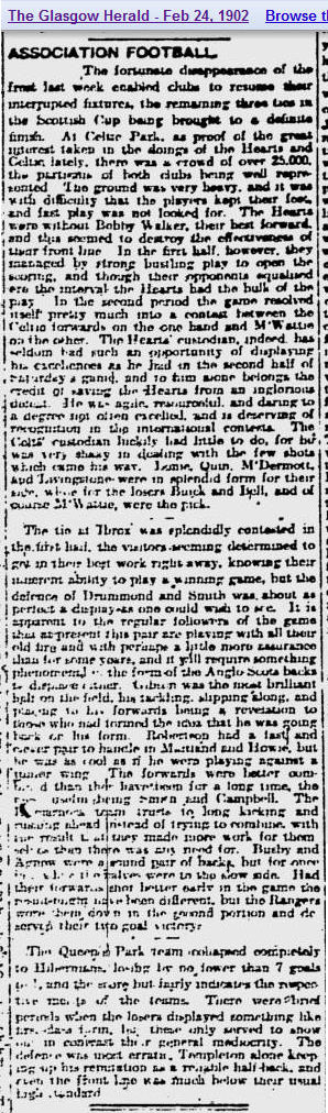 | Sat 22 Feb 1902 Celtic 2 Hearts 1 Sat 22 Feb 1902 Queens Park 1 Hibernian 7 |