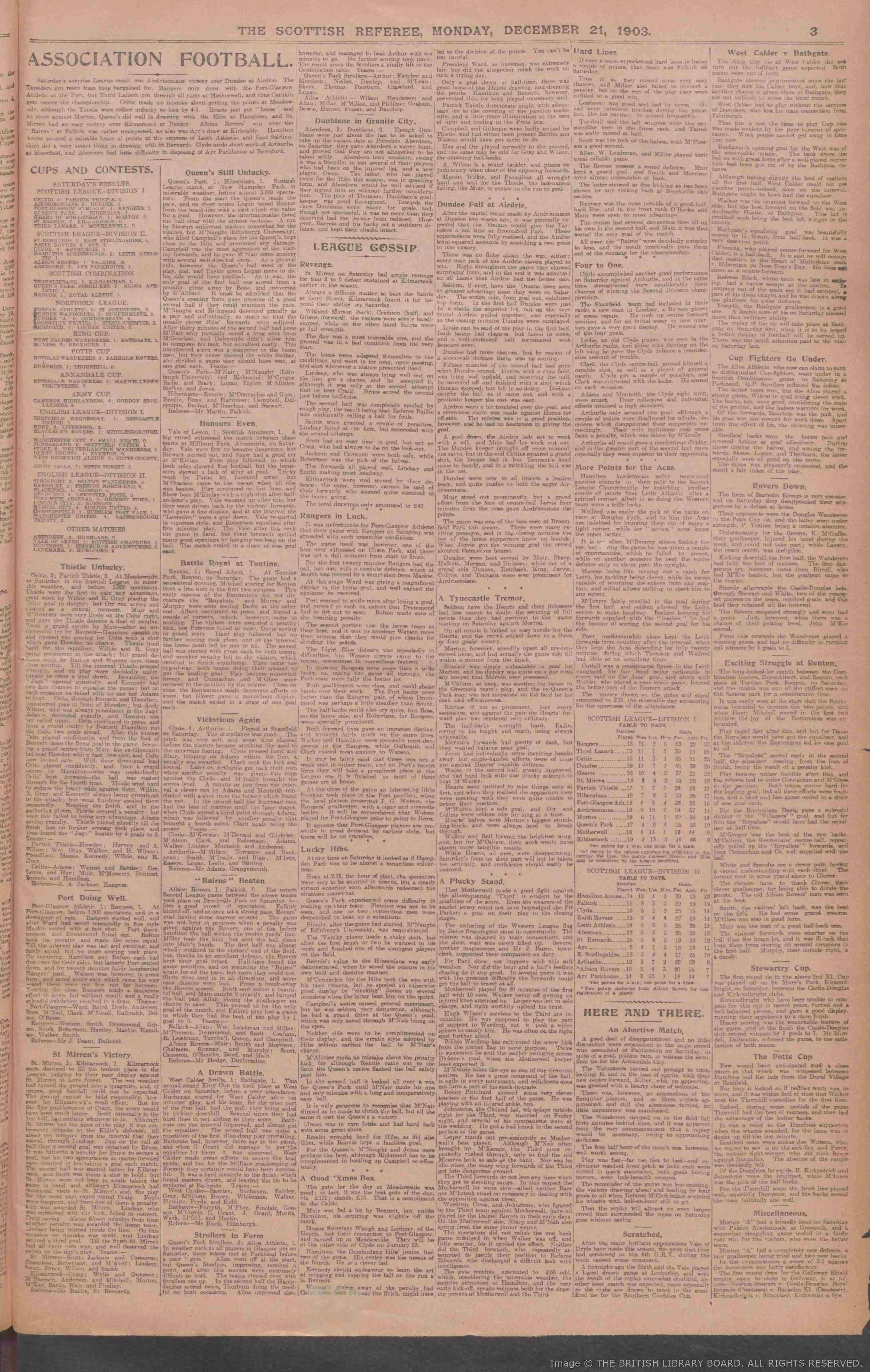 | Sat 19 Dec 1903 Hearts 1 Greenock Morton 0 Sat 19 Dec 1903 Hibernian 1 Queens Park 1 |