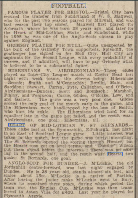 | Mon 08 May 1905 St Bernards 1 Hearts 2 | |||||||