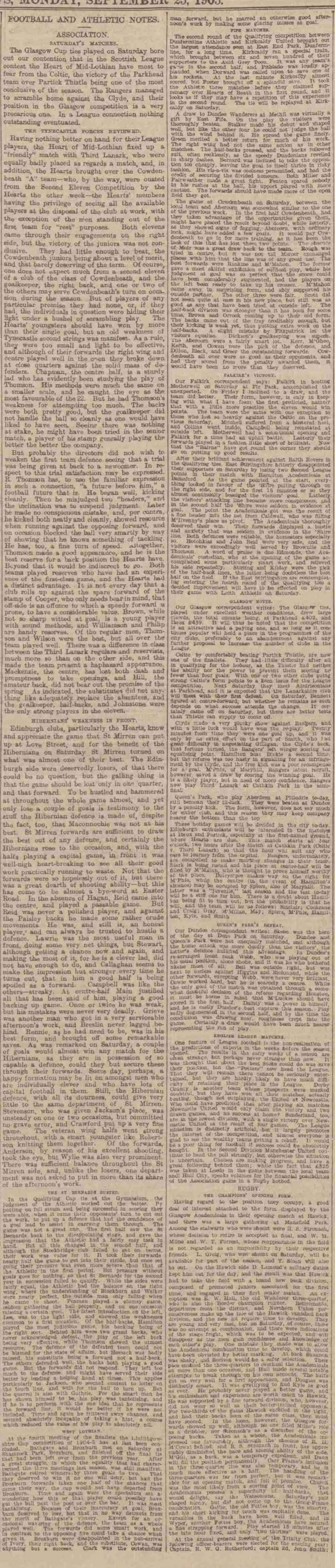 | Sat 23 Sep 1905 Hearts 4 Third Lanark 0 Sat 23 Sep 1905 St Mirren 2 Hibernian 0 |