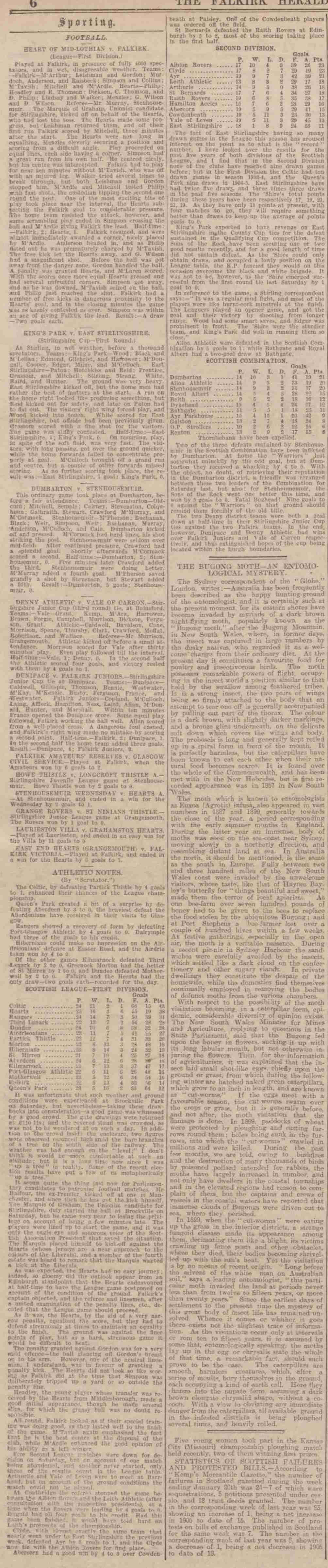 | Sat 20 Jan 1906 Falkirk 2 Hearts 2 Sat 20 Jan 1906 Hibernian 0 Airdrieonians 4 |