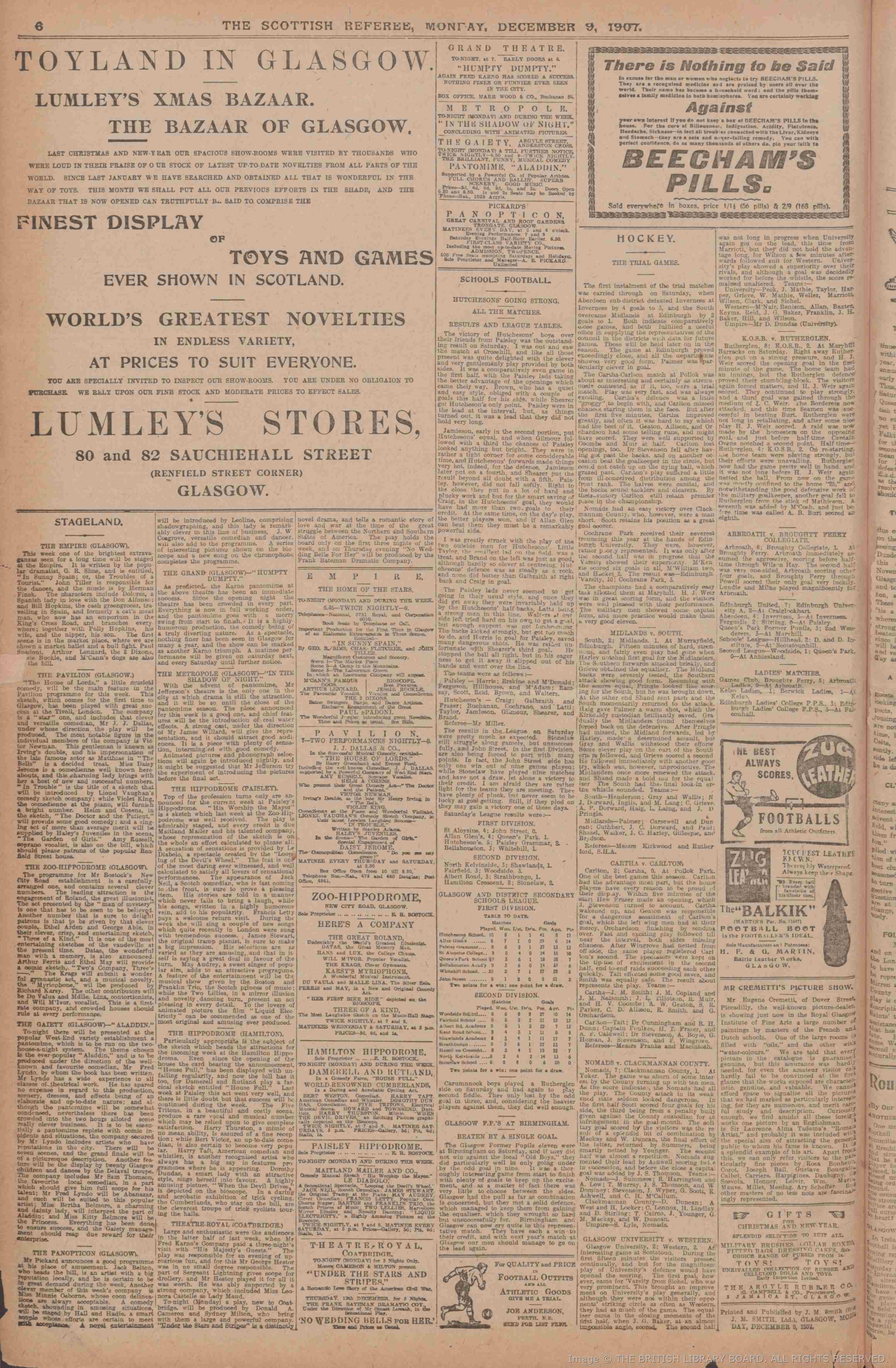 | Sat 07 Dec 1907 Hearts 1 Rangers 2 Sat 07 Dec 1907 Queens Park 1 Hibernian 2 |