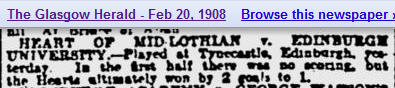 | Wed 19 Feb 1908 Hearts 2 Edinburgh University 1 | |||||||