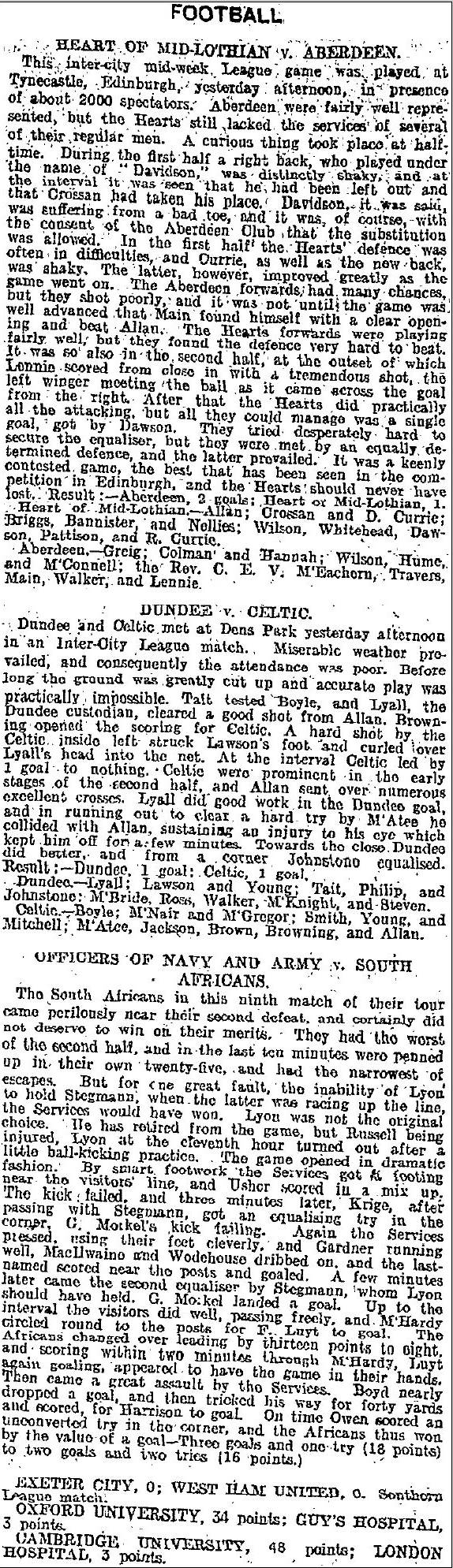 | Wed 30 Oct 1912 Hearts 1 Aberdeen 2 | |||||||