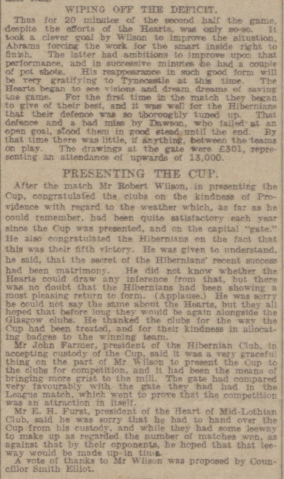 | Wed 01 Jan 1913 Hibernian 3 Hearts 2 | |||||||