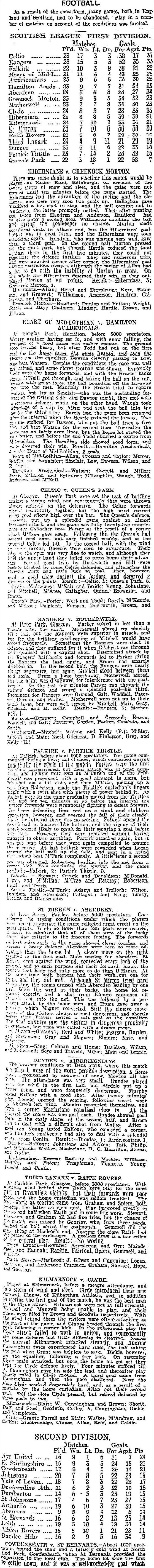 | Sat 11 Jan 1913 Hamilton Academical 4 Hearts 2 Sat 11 Jan 1913 Hibernian 3 Greenock Morton 1 |