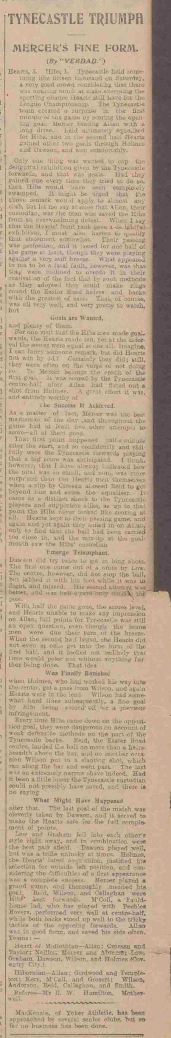 | Sat 14 Feb 1914 Hearts 3 Hibernian 1 | |||||||
