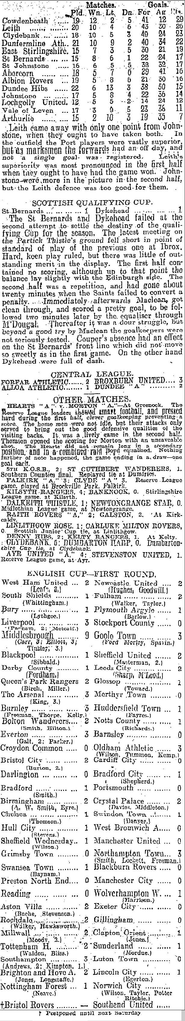 | Sat 09 Jan 1915 Hearts 1 Greenock Morton 0 Sat 09 Jan 1915 Airdrieonians 1 Hibernian 3 |