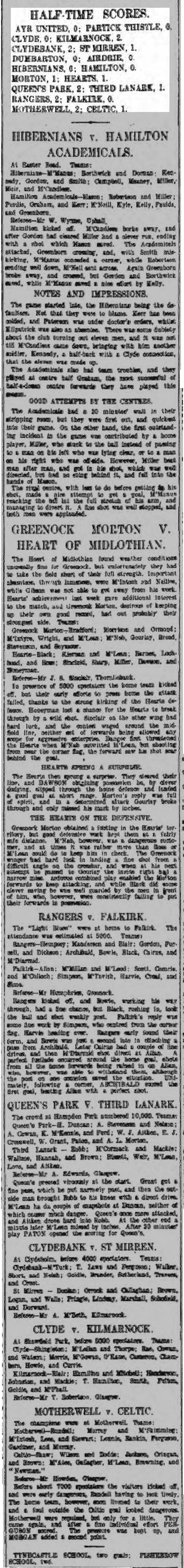 | Sat 15 Dec 1917 Greenock Morton 1 Hearts 1 Sat 15 Dec 1917 Hibernian 1 Hamilton Academical 1 |
