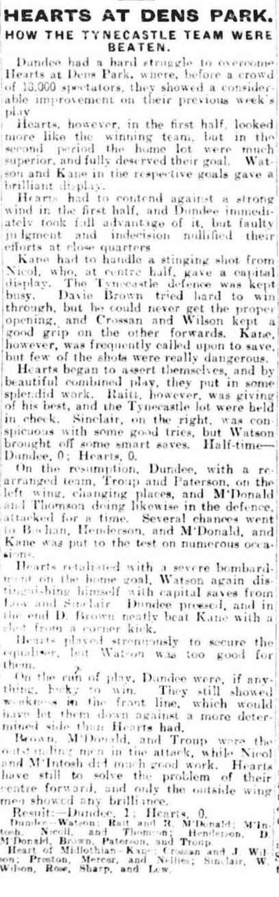 | Sat 20 Sep 1919 Dundee 1 Hearts 0 | |||||||