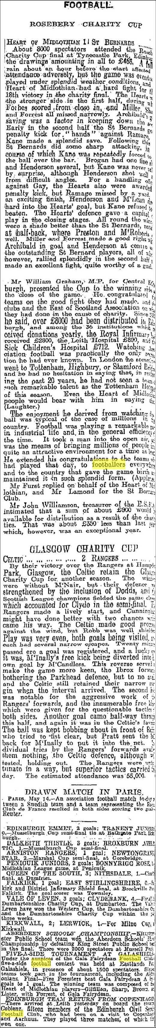 | Sat 14 May 1921 Hearts 1 St Bernards 0 | |||||||