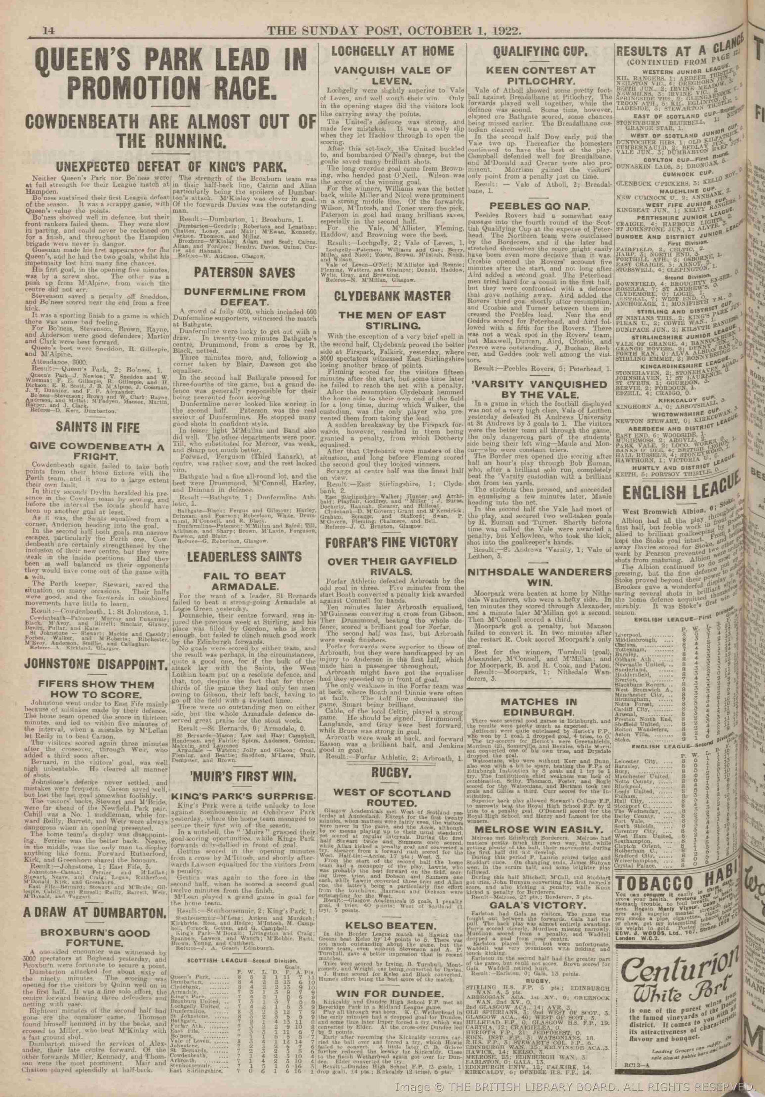 | Sat 30 Sep 1922 Alloa Athletic 0 Hearts 3 Sat 30 Sep 1922 Hibernian 1 Kilmarnock 1 |