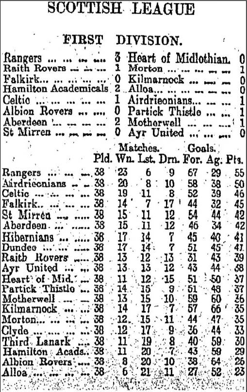 | Sat 28 Apr 1923 Rangers 3 Hearts 0 Sat 28 Apr 1923 Hibernian 3 Dundee 3 |
