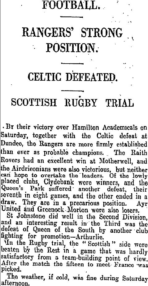 | Sat 22 Dec 1923 Kilmarnock 2 Hearts 1 Sat 22 Dec 1923 Hibernian 4 Queens Park 0 |