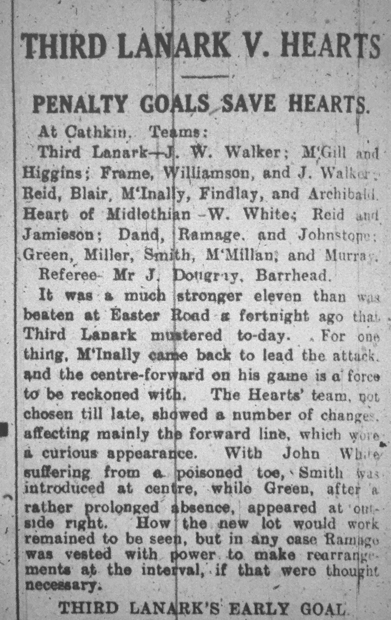 | Sat 21 Feb 1925 Third Lanark 2 Hearts 2 | |||||||