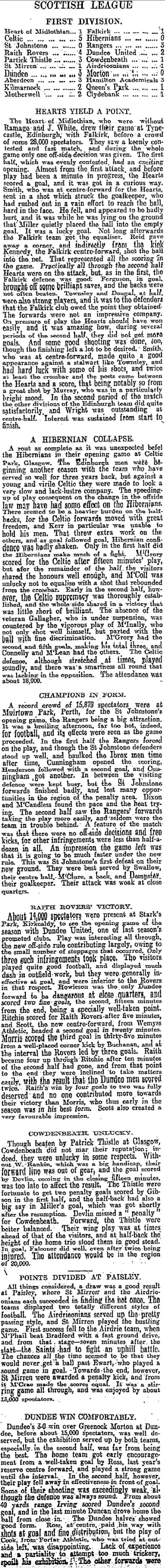 | Sat 15 Aug 1925 Hearts 1 Falkirk 1 Sat 15 Aug 1925 Celtic 5 Hibernian 0 |