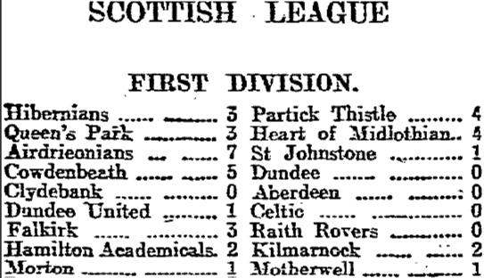 | Sat 19 Sep 1925 Queens Park 3 Hearts 4 Sat 19 Sep 1925 Hibernian 3 Partick Thistle 4 |