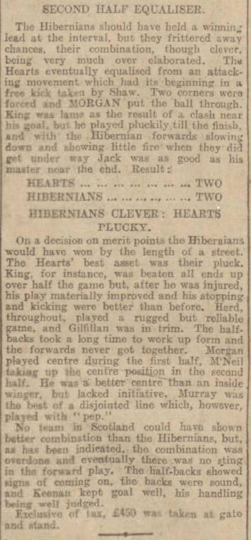 | Wed 31 Aug 1927 Hearts 2 Hibernian 2 | |||||||